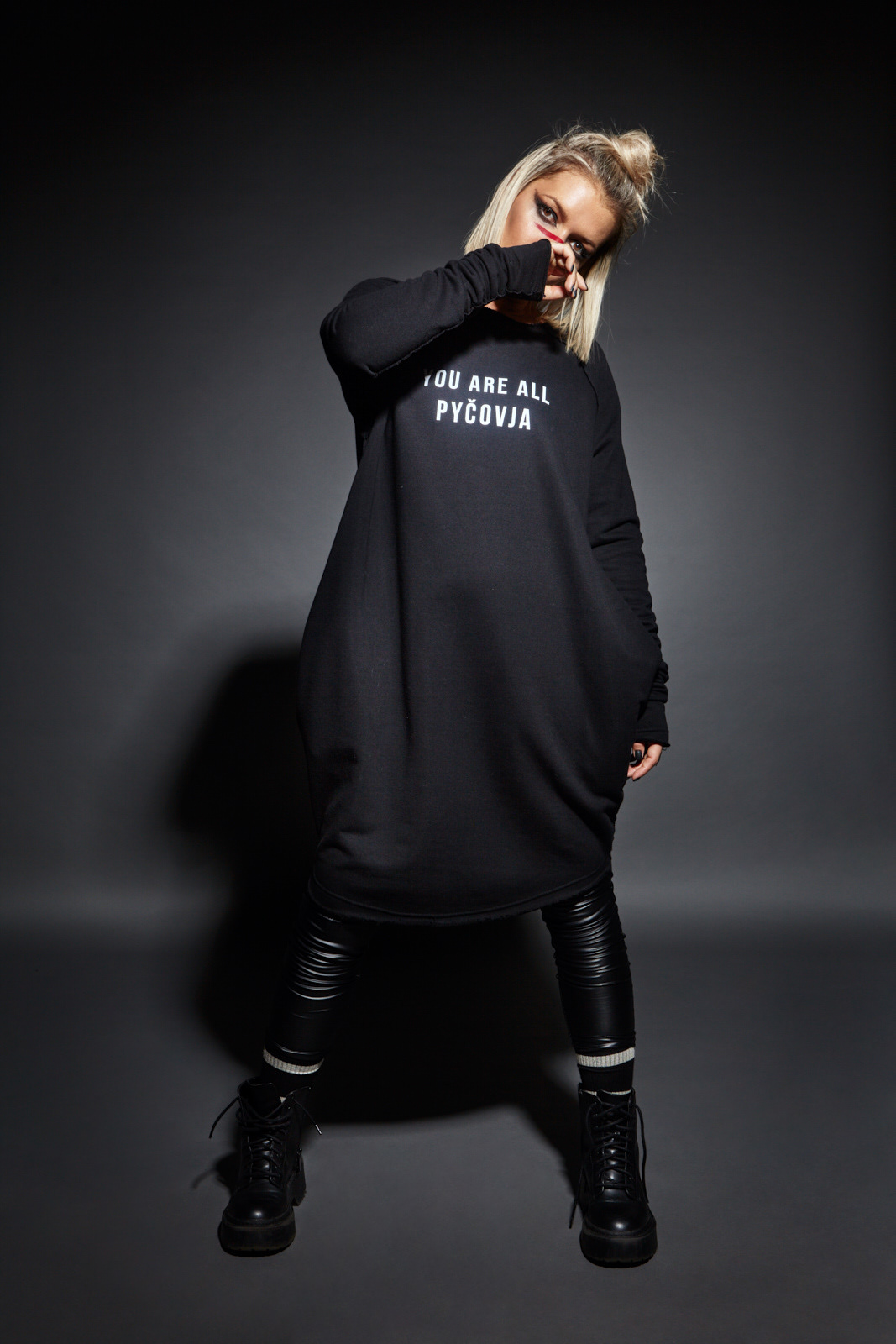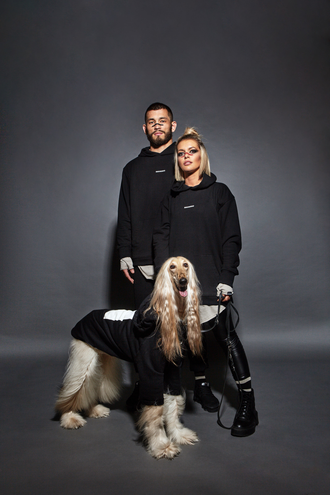 People & dogs in clothes. Pictures for "DOGS IN SOCKS" store.